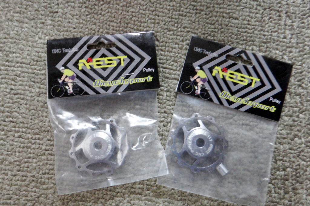 シマノのプーリーは横移動に遊びがあるそうですが、サードパーティ製は横移動の遊びがないので、変速がシビアになるらしいです。