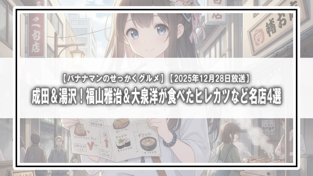 以上、2026年1月4日放送の「バナナマンのせっかくグルメ!!新春SP」で紹介された名店9選でした。