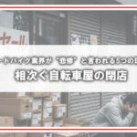 タイヤやチューブといった消耗品を海外通販で購入するユーザーが増え、店舗での物販利益が激減。さらに「持ち込み修理お断り」という苦渋の決断をする店が増え、顧客離れを招く悪循環に陥っています。