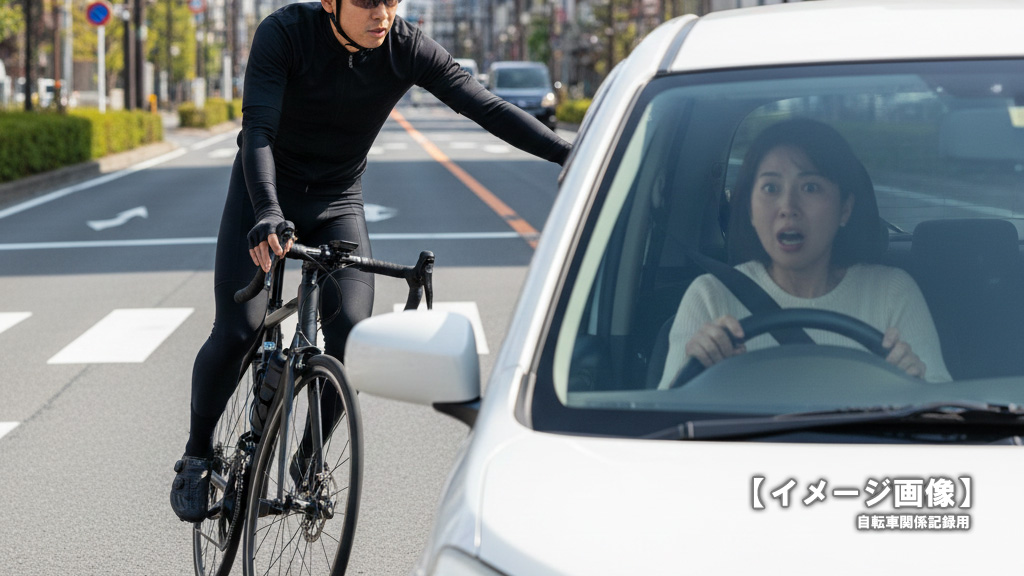 本格的な装備をしたロードバイクが車道を斜めに横切る動きは、ドライバーにとっては恐怖でしかありませんが、その多くは「自転車側のルール誤認」や「手信号の欠如」によるものです。