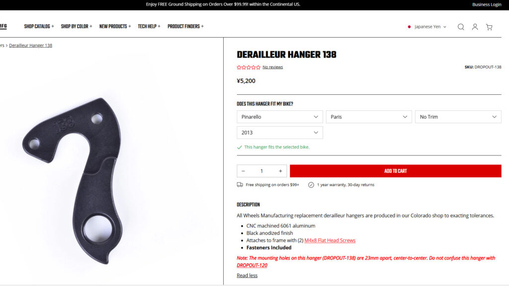 - 「does this hanger fit my bike?」でモデルを選択し、適合するか確認。