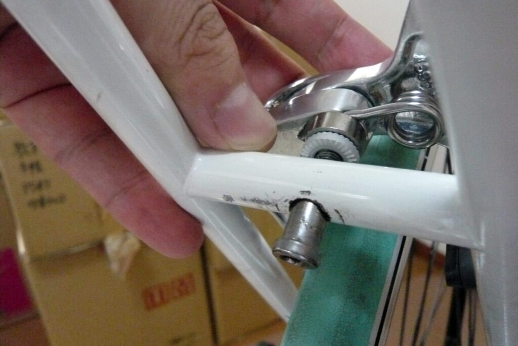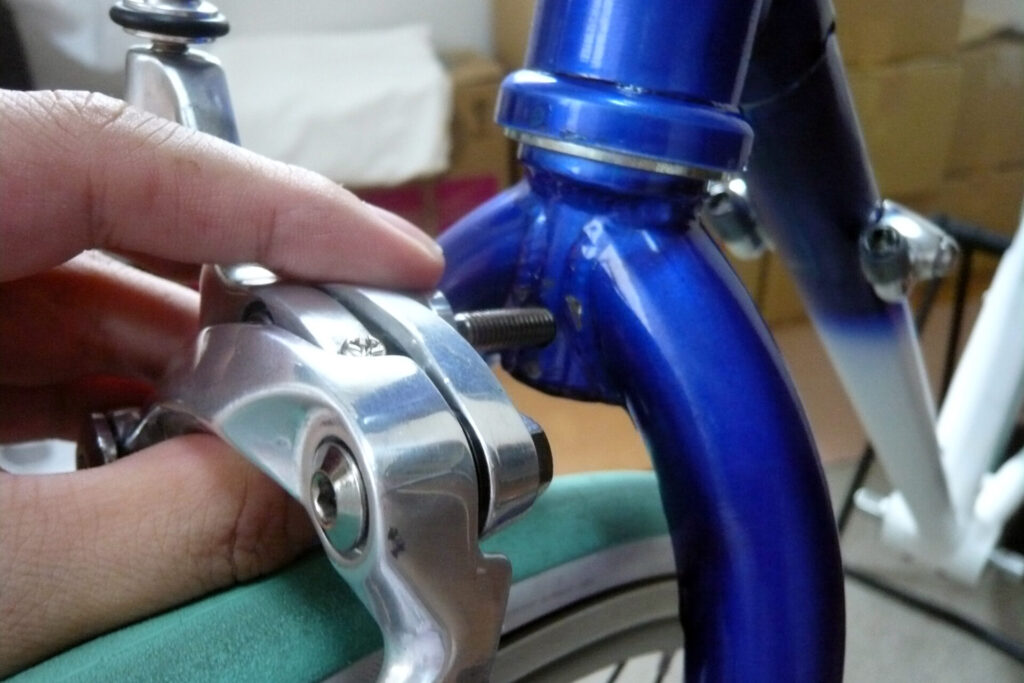 使用したのは、ナット留めタイプのキャリパーブレーキ。