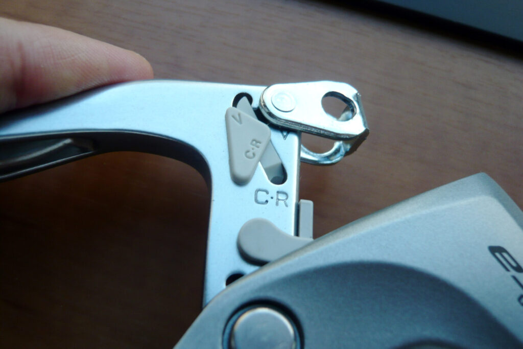 このブレーキレバーは優れもので、キャリパーとVブレーキどちらでも使えるようになっております。