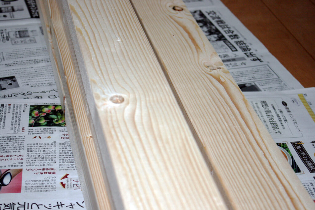 写真を撮り忘れましたが、自転車をひっかける部分をアールにしたかったので、カンナ掛けをして、四角を丸く処理しました。