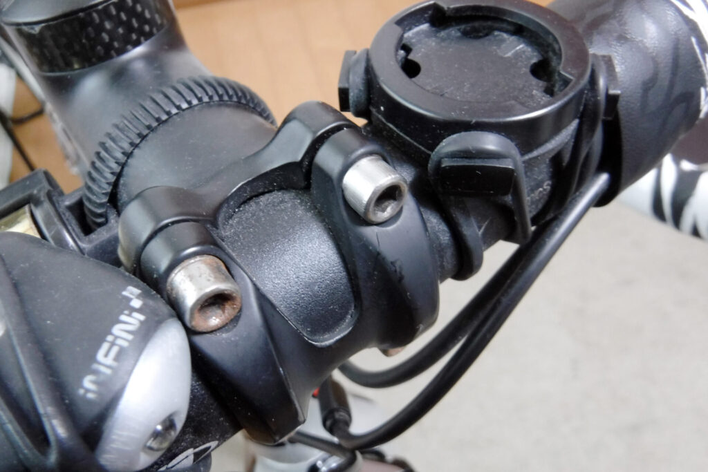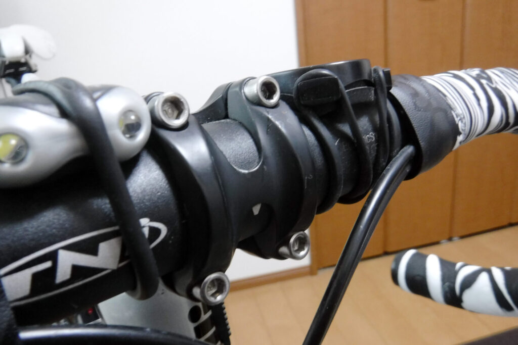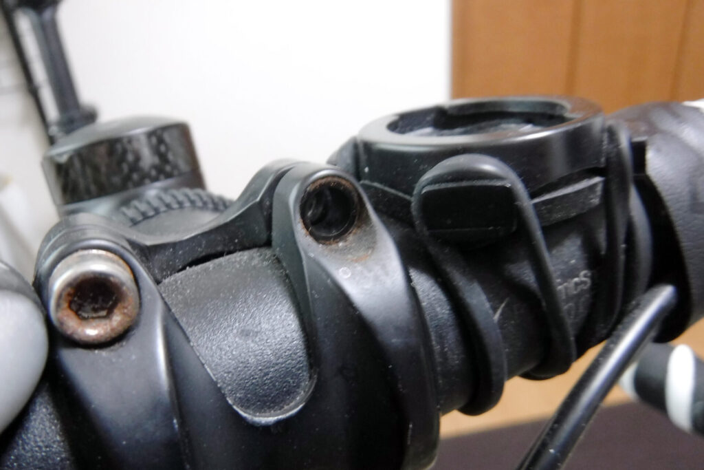 いつ届くのか分からないので、手持ちで今は使っていないステムでボルトを拝借して交換します。