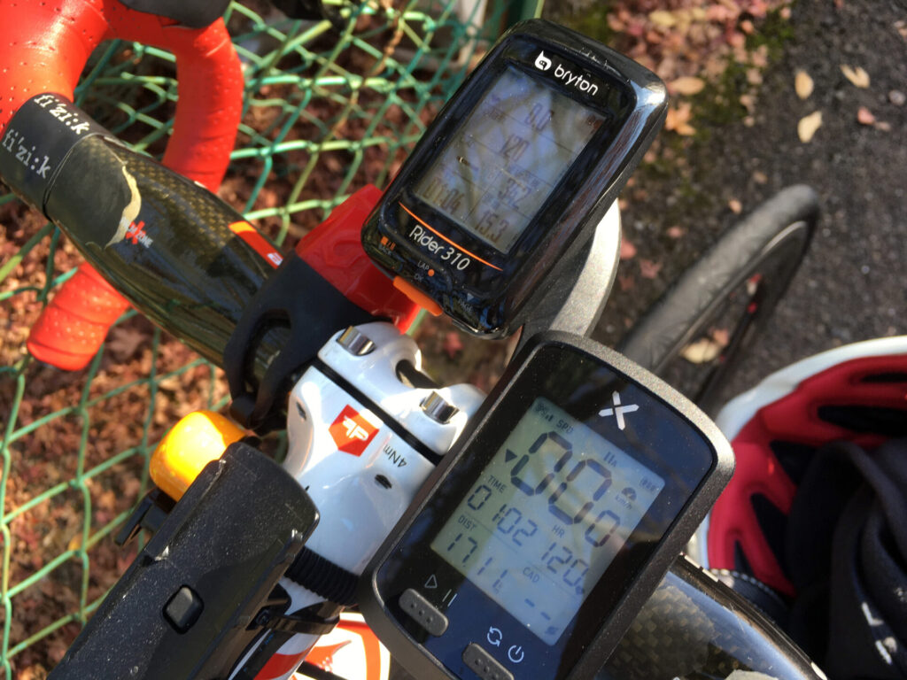 GPSの精度は、ほぼ同じくらいで、少しXOSSの方が誤差が少ないです。