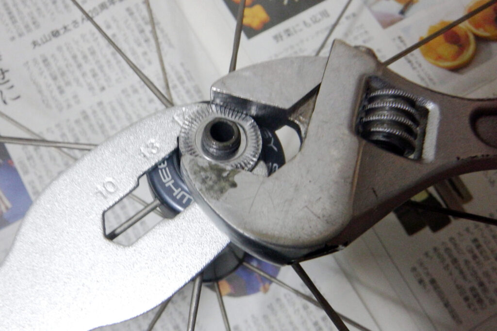 特にWH-RS80のリアハブは、15mmの薄口スパナがないとロックナットにアクセスできません。