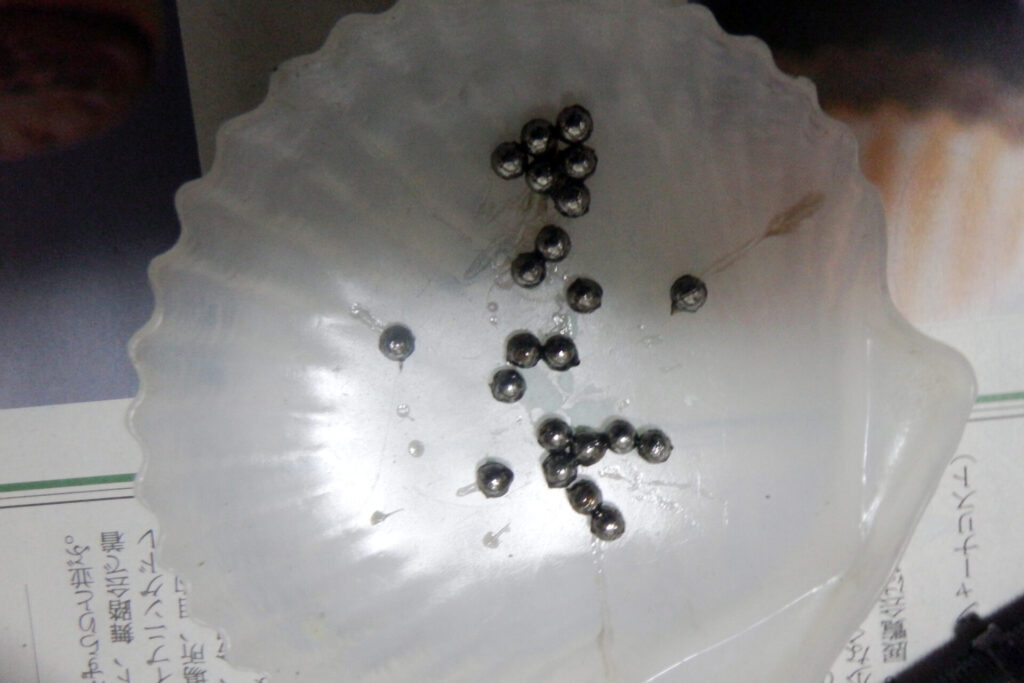 • 洗浄後、グリスに混ざっていた黒い粒状の異物を発見