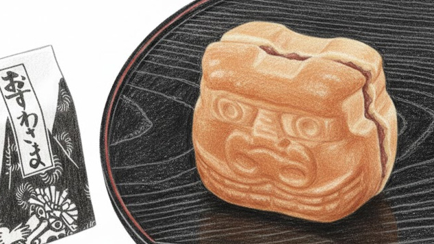 地元の諏訪神社の獅子をモチーフにした最中(もなか)。香ばしい皮と上品なあんこのバランスが絶妙です。