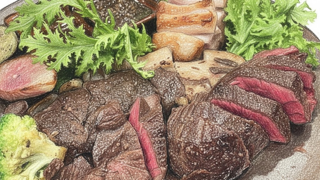 続いては肉料理対決。本格フレンチの牛ホホ肉と、希少なご当地ブランド豚のステーキが火花を散らします。